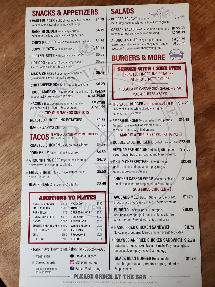 Welcome to Rankin Vault Cocktail Lounge, a delightful culinary gem nestled in Asheville’s vibrant streets. This lounge masterfully marries a laid-back atmosphere with a menu that caters to every palate. Start your journey with snacks like the Bahn Mi Slider or Mac & Cheese, both showcasing the kitchen’s flair for comfort food. The standout items are undoubtedly the sandwiches, with the Polynesian Fried Chicken Sandwich and the highly praised Vault Burger stealing the spotlight.